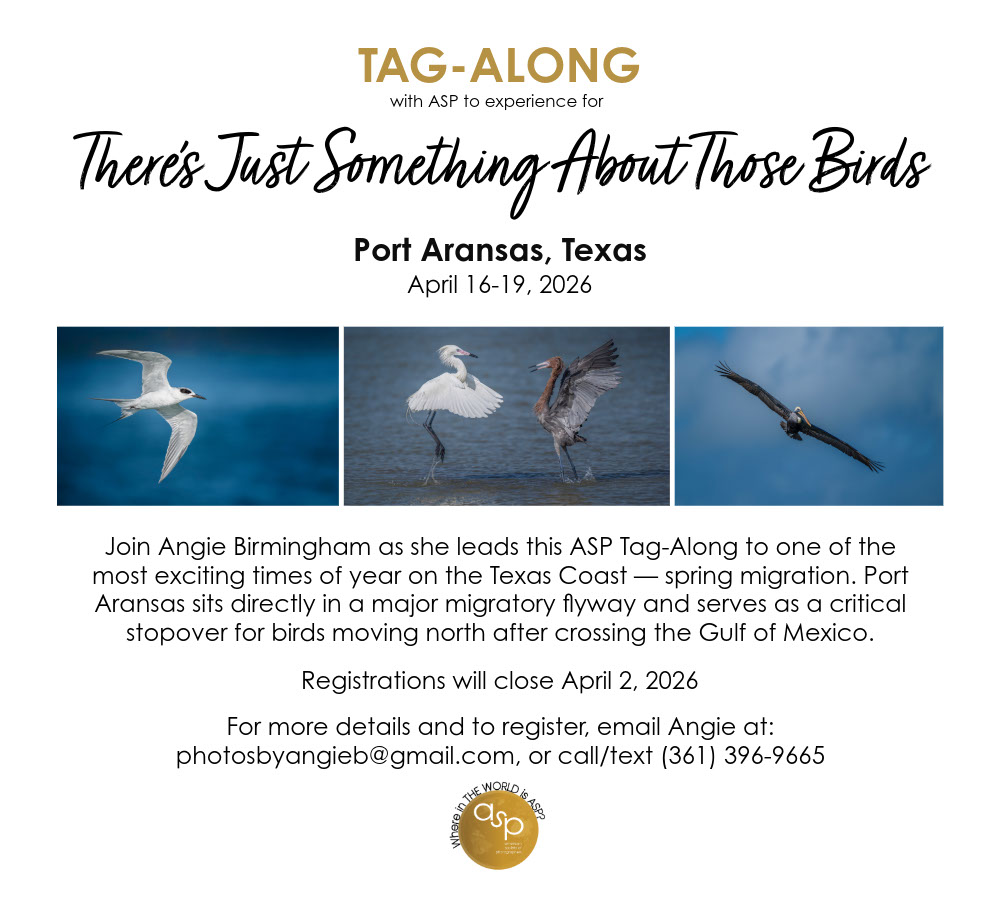 Join ASP and Friends of ASP as we travel to Port Aransas, Texas, right in the heart of one of North America's most important migratory flyways. Birds crossing the Gulf of Mexico stop here to rest and refuel, making this a prime location for observing and photographing a remarkable variety of species during peak movement.